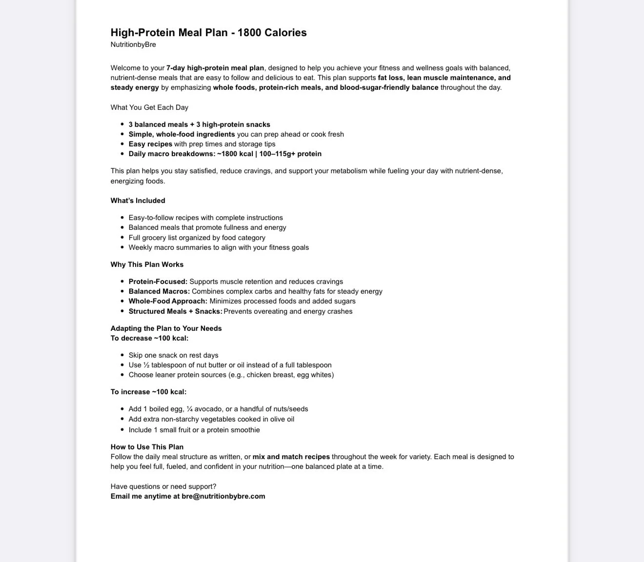 Nourish your body, build lean muscle, and sustain energy with this 7-Day 1800-Calorie High-Protein Meal Plan, expertly designed by a registered dietitian for women who train hard and eat smart.