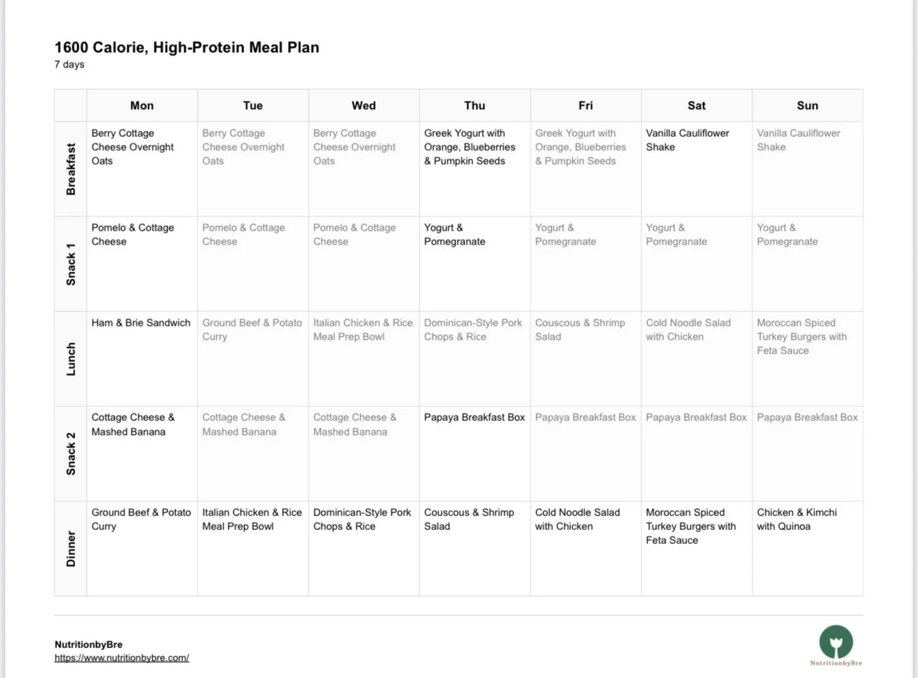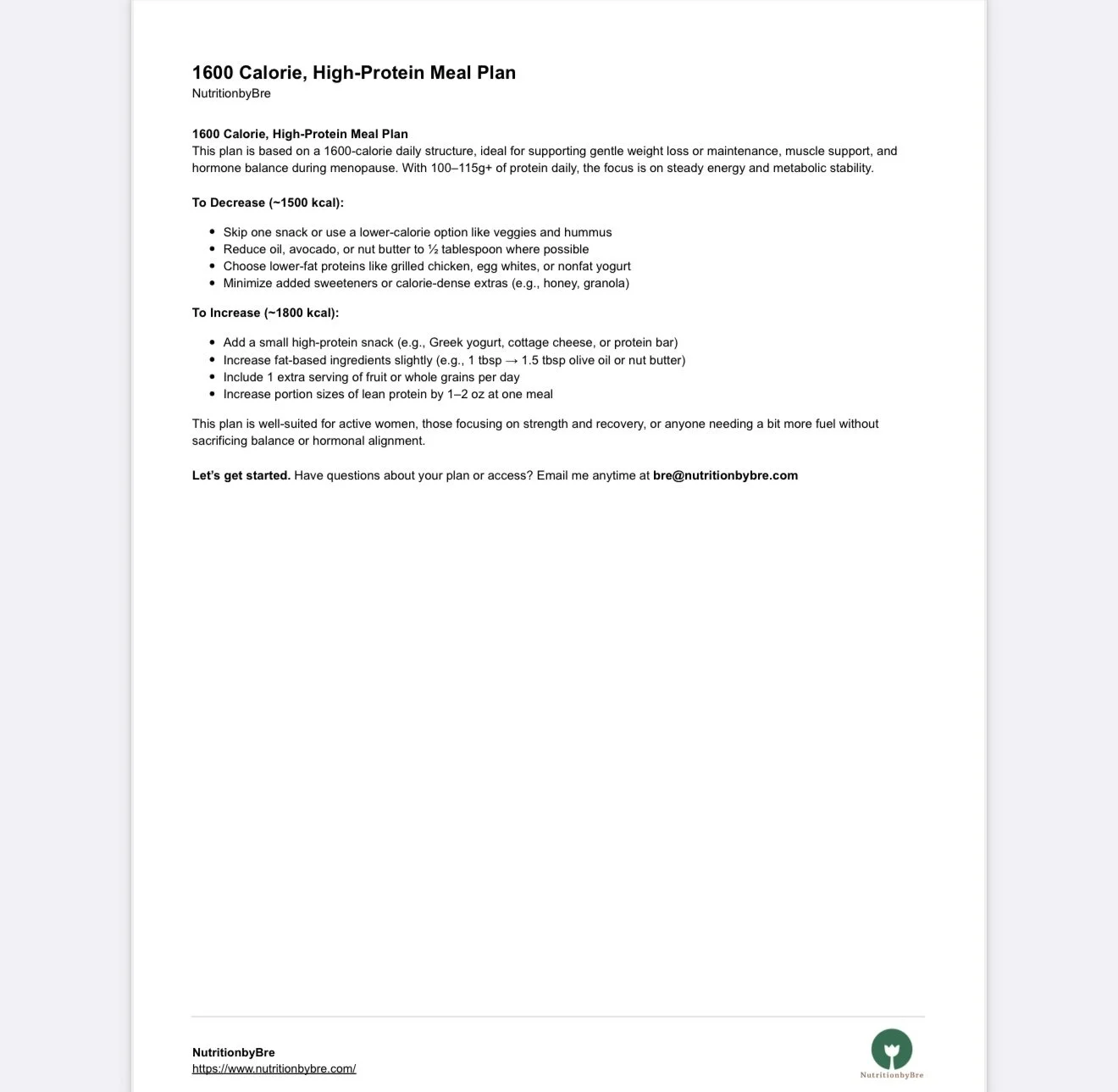 Looking for a high-protein, nutrient-dense meal plan to support fat loss and energy? This 7-day guide includes balanced 1600-calorie meals with 120g+ protein per day, prep tips, mix-and-match recipes, and a grocery list to simplify your week.